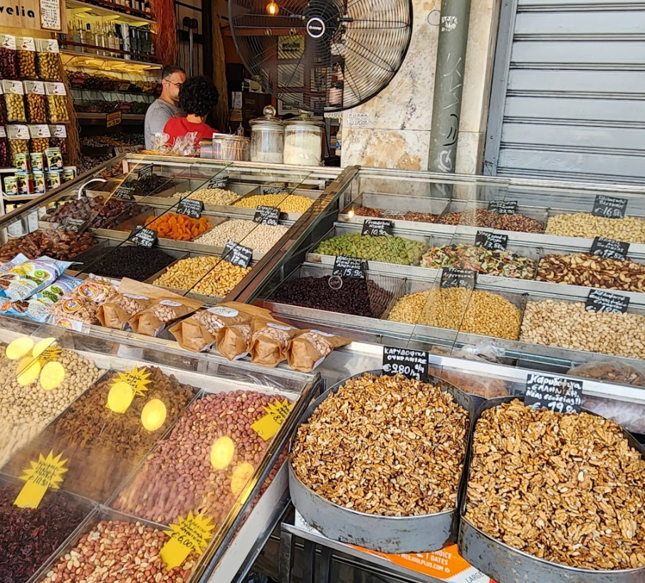 A Központi piac, vagy ahogy a helyiek nevezik, Varvakeios Athén legnagyobb ételpiaca. Az utca egyik oldalán hentesek kínálják a portékáikat, mindenféle hús- és halkülönlegességeket. A másik oldala az állatbarát szekció, ahol különböző zöldségek, gyümölcsök, magvak és fűszerek kaphatók. Jó olykor meglátogatni egy egy helyi piacot, részese lenni a kavalkádnak, vagy éppen megkóstolni valamit filléketért amit addig még sosem láttunk.