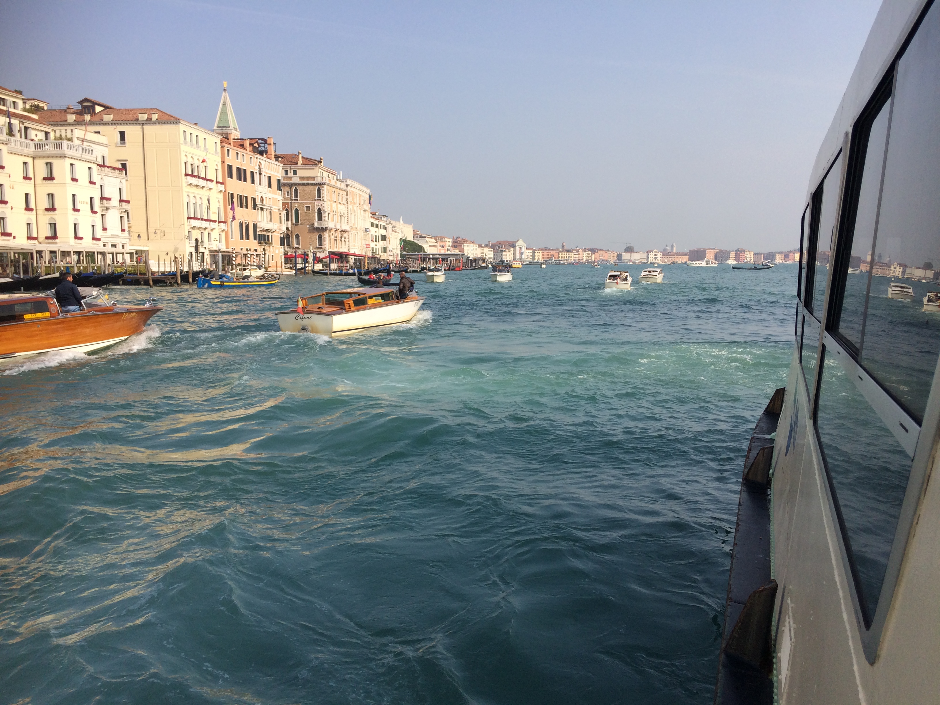 A vízibuszozást kezdhetjük már a városba beérkezés után, a St. Lucia vasútállomás, és a Piazzale Roma közeléből. Az 1-es vaporettóval 40 perc alatt érhetünk végig, a Szt. Márk térig (majd továbbmegy a hajó a Lidóra). A 2-es vaporetto is a Canal Grandén közlekedik. A 2-es gyorsabb az 1-esnél, kevesebb helyen áll meg, ezért ha gyönyörködnénk a látványban, inkább az 1-essel menjünk. Viszont a 2-es nem csak a Canal Grandén közlekedik, tehát a Piazzale Román vagy a Tronchetto-szigeten felszállva figyelni kell, hogy a megfelelő, Canal Grande irányába tartóra szálljunk fel. Az N jelzésű vaporettóval pedig éjszaka mehetünk végig a Canal Grandén, a megfelelő irányba felszállva. Természetesen a Canal Grande másik végén, a Szt. Márk térről indulva is végighajózhatunk.